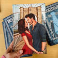 Beautiful hand painted illustration of Nate & Becca underneath that jacket