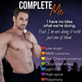 Complete Me is a low-angst, MMX, opposites attract, second chance contemporary LGBTQ+ romance about unexpected connections, being more than two halves of a whole, and finding the perfect fit, even if it’s not quite as expected. It contains lots of dad jokes, no cheating, and has a guaranteed happily ever after.