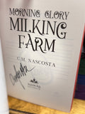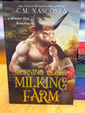 Morning Glory Milking Farm is a short human/monster romance novel (60k), featuring a high heat slow burn with a lot of heart, and a guaranteed HEA. CWs are viewable on author's website. It is the first book in the Cambric Creek Monster Romance series, and can be read as a standalone.
